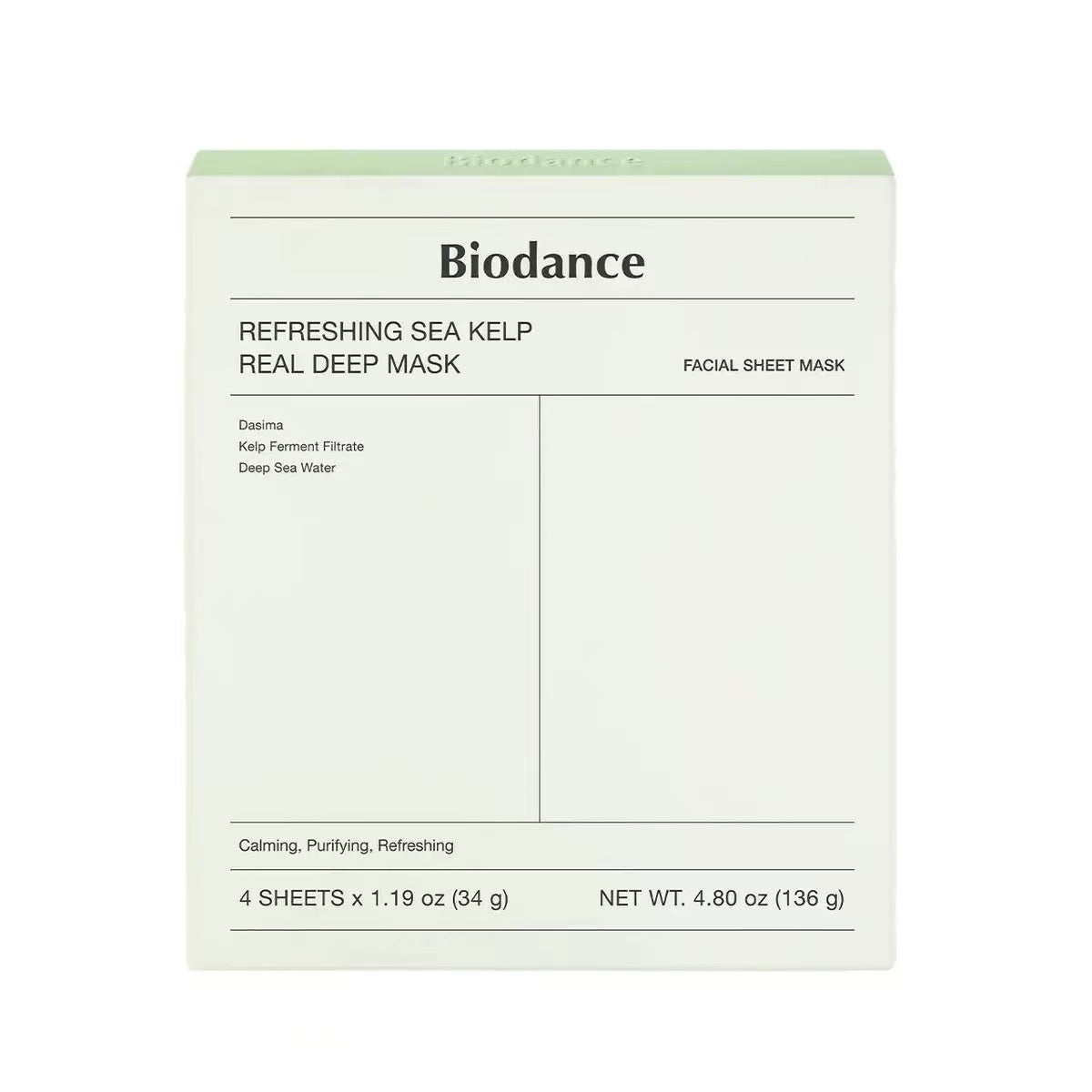 Offrez à votre peau une vague de fraîcheur et de pureté avec le Biodance Refreshing Sea Kelp Real Deep Mask, un masque en tissu marin conçu pour détoxifier, apaiser et revitaliser la peau.